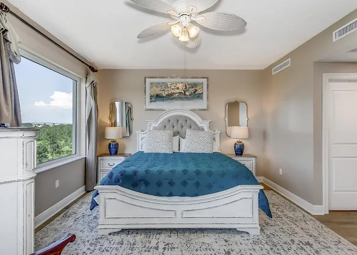 The 2-bedroom Santo Amaro 404B Villa Pensacola, located 1.7 miles from Perdido Key Beach, invites guests to relax in a Jacuzzi bathtub and a hot tub.